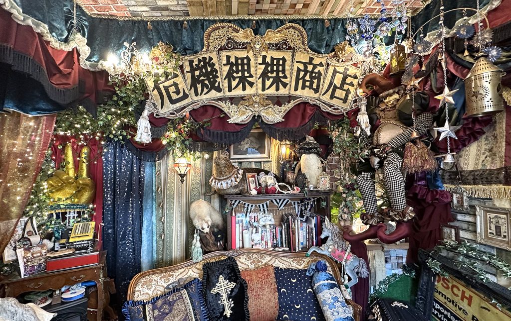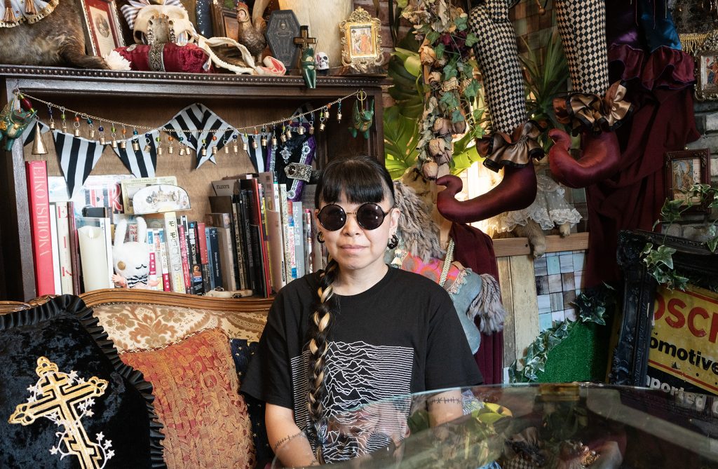 大田南六郷一郵便局の真向かいにあるのが2018年オープンの「危機裸裸商店」。日本を代表するゴス*・一点物のアート衣装のショップです。オーナーでデザイナーの後藤ききさんにお話を伺いました。