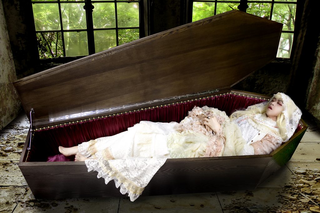「舞台装飾品をオーダーされる方がいて、『棺を作れませんか』というお話がありました。10年以上前のことです。棺や仏具の会社さんに問い合わせたのですが、『不謹慎に当たる。厳かなものだから、変なことやると業界から干されてしまうから作れません』と断られました。それで、いったん断念して、いつかやれたらなと漠然と思い続けていました。そうこうしている内にコロナ禍になりました。ライブとかイベントもないので、仕事が全くなくなってしまった。もう死んだと思って棺作ろう、棺を作ってリボーンしよう=再生しようと思って、あるお金を全部かき集めて、大田区の内装家具の会社にお願いしました。作り始めると職人さんだから、『ここはこうした方がいいよね』といった意見がいっぱい出てきて楽しかったです。まず1個作っていただきました。SNSで『こんなの作ろうと思っています』と何げなく発信したら、『私も欲しい!』という反応をたくさんいただいた。クラウドファンディングで受注を受けつつ開始しました。」