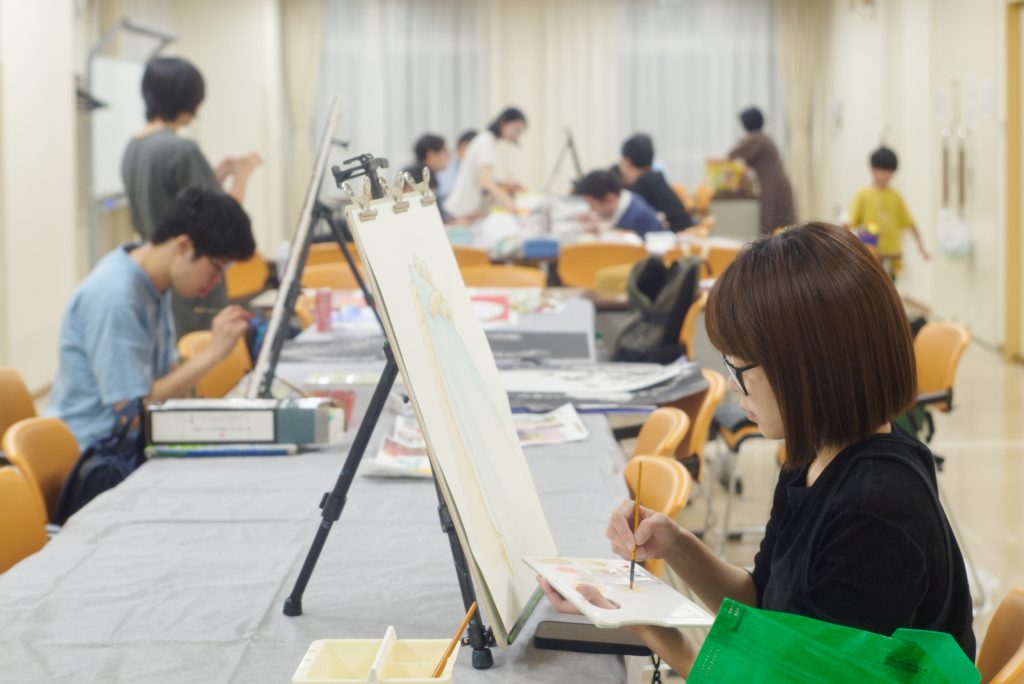 「現在は月3回金曜日、大田区中央にある障害者サポートセンター(さぽーとぴあ)で活動しています。4歳から大人、美大受験生、障がいのある方など様々な方が1つの空間で絵を描いています。同じ課題を行うのではなく、それぞれが自分のテーマで制作するので、お互いが刺激し合い高め合える場になればと思っています。2年前からは大田区文化振興協会と『+ART(プラサート)』というプロジェクトを始めました。このプロジェクトは、大田区の福祉作業所の自主製品をアートの力によってより魅力的で購入したくなる製品にしていく、ワークショップ型のプロジェクトです。ワークショップノコノコは、利用者さんの才能を引き出しつつ、楽しんで制作できるように、これまで培ってきた経験を活かして提案しています。」
